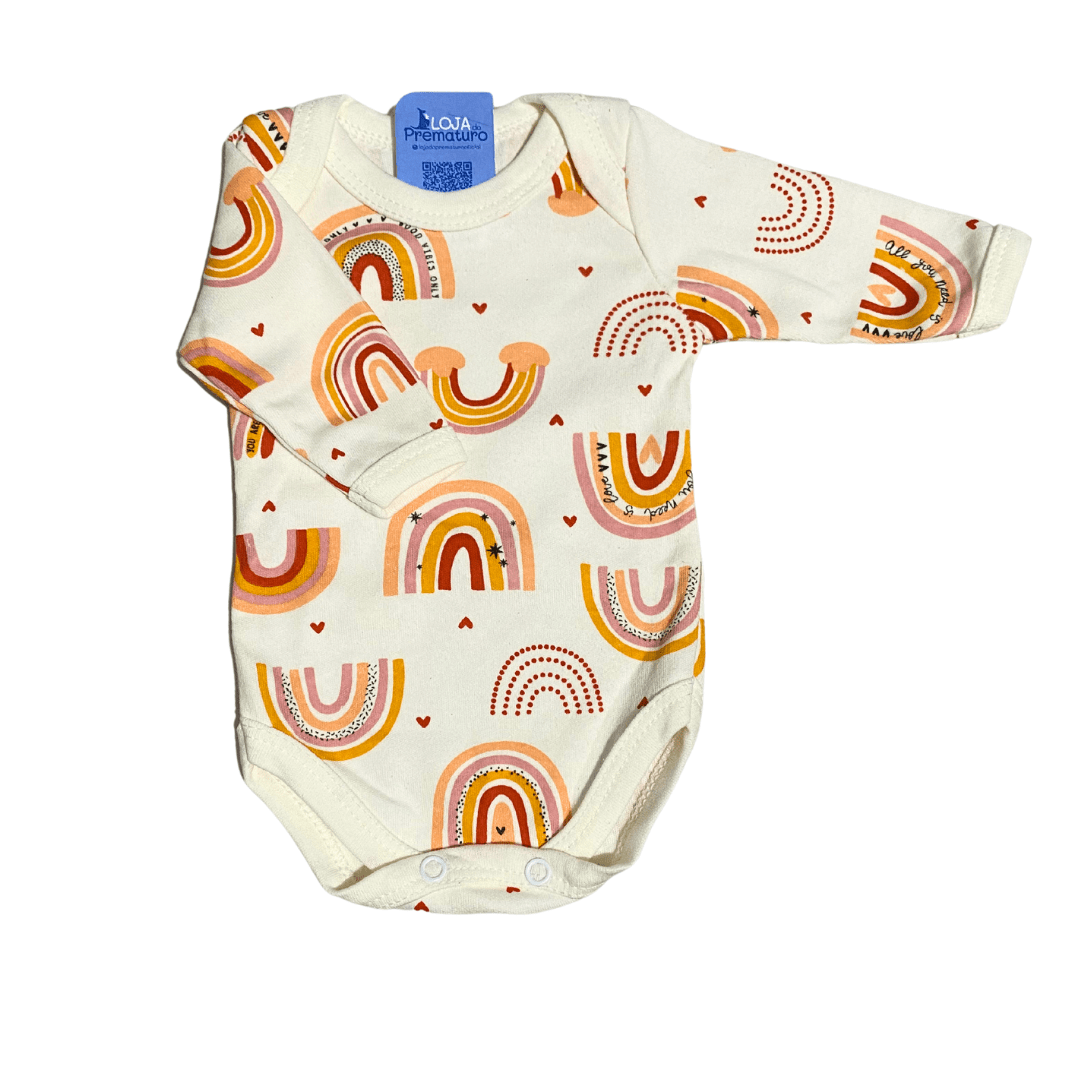 R$ 46,46 no pix (10% OFF) ou em 3x de R$ 17,21 s/jurosConjunto Prematuro Body e Culote100% Algodão Arco-Íris Rosa e Rosê