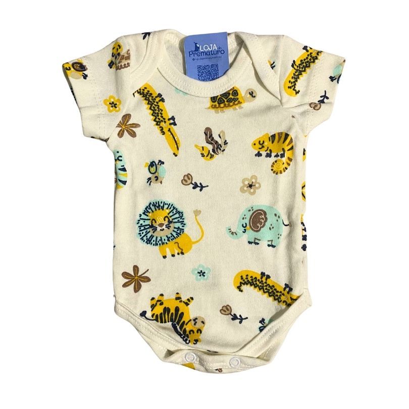 R$ 37,52 no pix (10% OFF) ou em 3x de R$ 13,90 s/jurosConjunto Prematuro Body e Culote 100% Algodão Verão Zoo Caramelo e Bege