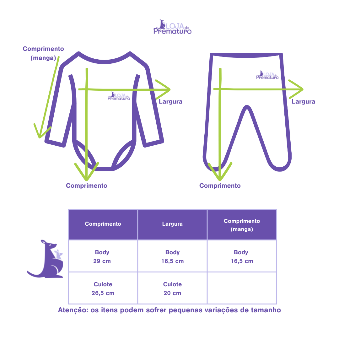 - Tipo: body manga comprida e calça com pé