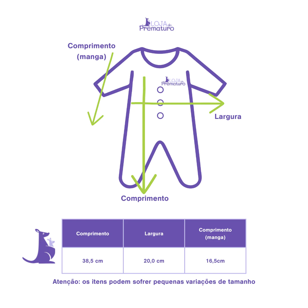 - Tamanho: prematuro – Ideal para bebês até 2,5 kg