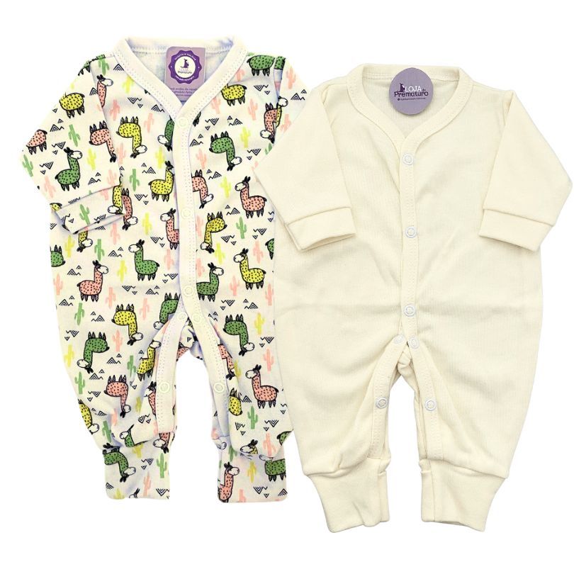 Kit Macacão de 2 peças para bebês prematuros, confeccionados com tecido super macio e toque suave pra oferecer muito conforto e estilo para seu bebê.