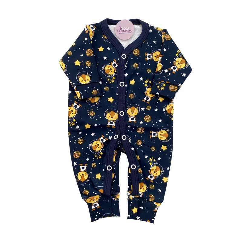 - Tipo: Macacão estilo pijama com pé reversível e fechamento em botão