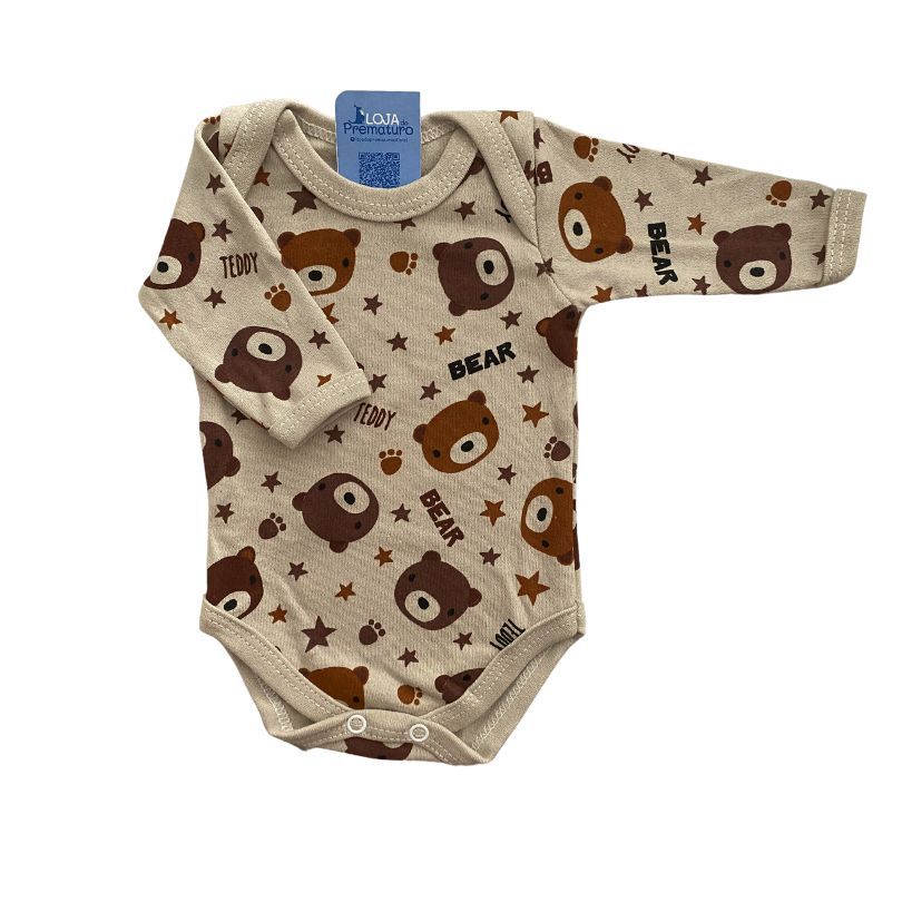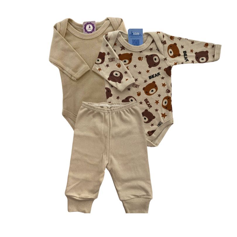 Kit Prematuro 2 Bodies e 1 Culote 100% Algodão Urso Caramelo