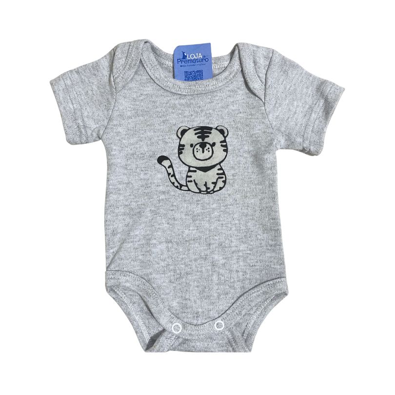 Kit Prematuro 2 Bodies Verão Manga Curta 100% Algodão Tigrinho Cinza