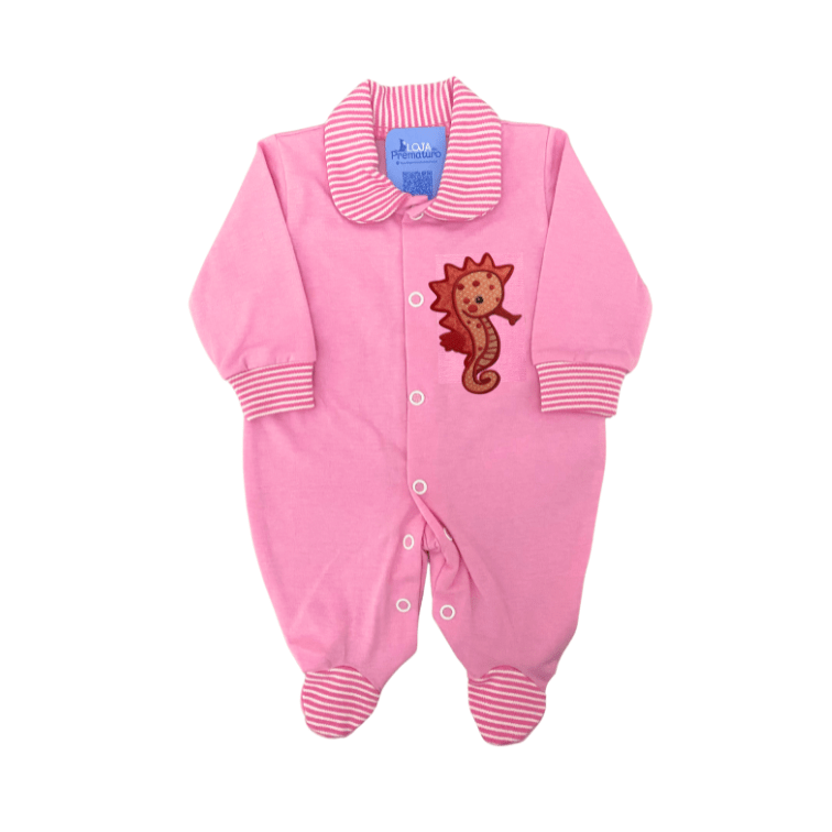 Macacão Prematuro Com Pé Gola E Detalhe Mar Rosa