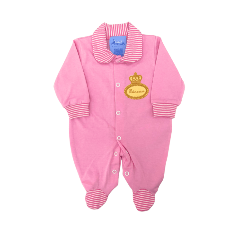 Macacão Prematuro Com Pé Gola E Detalhe Princesa Rosa